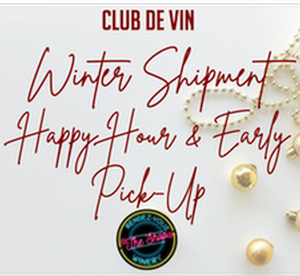 THIS IS AN EARLY PICK UP OPTION ON THURSDAY DECEMBER 4 FROM 4 TO 8 PM AT THE SHOP! TASTE THROUGH THE WINES IN YOUR ORDER TO CUSTOMIZE AND TAKE HOME BEFORE ANYONE ELSE!