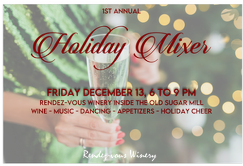 Come join us for a festive holiday mixer at Rendez-vous in Clarksburg. Connect with your friends (and make new ones), enjoy some delicious light bites from MaPi Catering, wine, live music by James Drips Music, and dancing.
