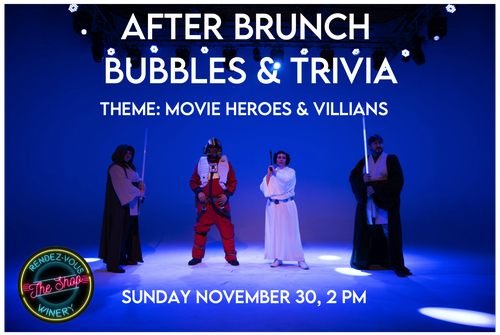 gather a group of your smartest friends and test your knowledge (the theme is movie heroes & villians) at the Shop by rendez-vous AFTER BRUNCH BUBBLES & trivia, hosted by special quizmaster Jen.
