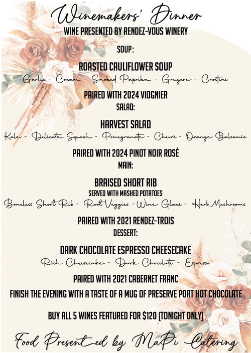 A multi-course intimate Dining Experience curated with Rendez-vous wine pairings.