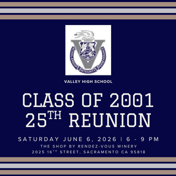 Fellow Valley High Class of 2001 Classmates! Join us for an evening to catch up with our class, 25 years after graduating the Halls of Valley High School!